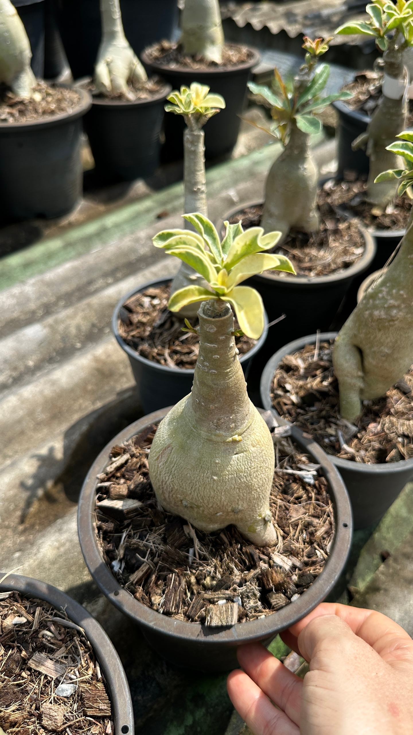 Друзья, помимо фермы каладиумов заехала и к адениумам. Хочу показать мини 03. Это вариегатный сорт. Фото в каталоге считаю очень неудачным. На самом деле, он очаровашка и без сомнения мини.