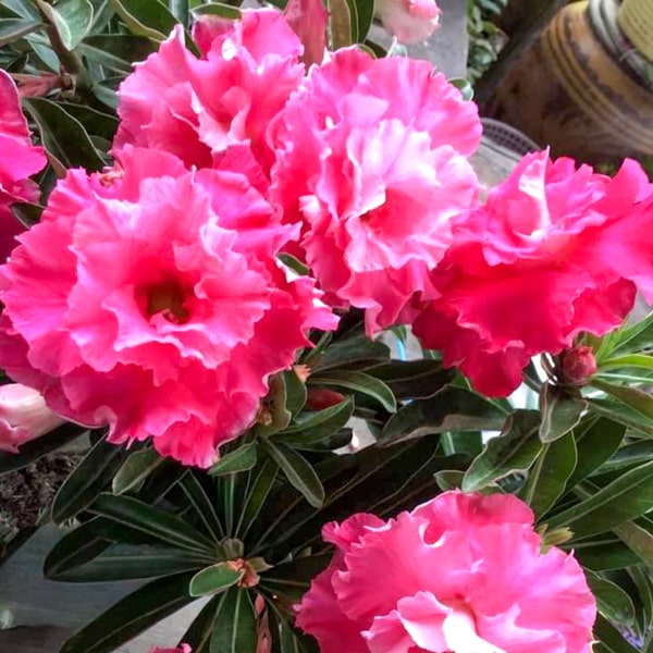 Привитый адениум обесум. Возраст подвоя 1-1.5 года. Растение в состоянии вегетативного покоя с открытой корневой системой – без земляного кома и горшочка, без листьев и цветков. Диаметр каудекса – 5-7 см, высота растений 20-25 см, вес – 180-250 г. Минимальное количество рожек – 2. Длина рожек 2-6 см.