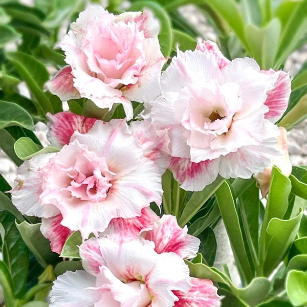 Привитый адениум обесум. Возраст подвоя 1-1.5 года. Растение в состоянии вегетативного покоя с открытой корневой системой – без земляного кома и горшочка, без листьев и цветков. Диаметр каудекса – 5-7 см, высота растений 20-25 см, вес – 180-250 г. Минимальное количество рожек – 2. Длина рожек 2-6 см.