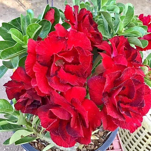Привитый адениум обесум. Возраст подвоя 1-1.5 года. Растение в состоянии вегетативного покоя с открытой корневой системой – без земляного кома и горшочка, без листьев и цветков. Диаметр каудекса – 5-7 см, высота растений 20-25 см, вес – 180-250 г. Минимальное количество рожек – 2. Длина рожек 2-6 см.