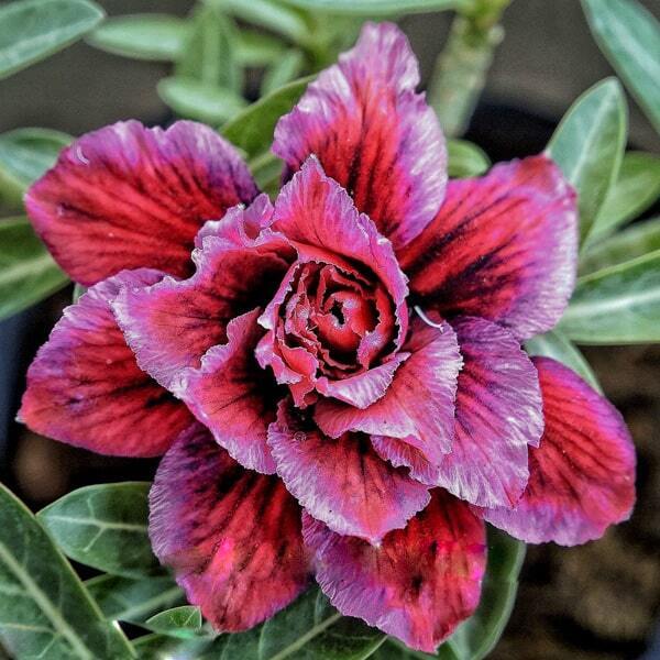 Привитый адениум обесум. Возраст подвоя 1-1.5 года. Растение в состоянии вегетативного покоя с открытой корневой системой – без земляного кома и горшочка, без листьев и цветков. Диаметр каудекса – 4-6 см, высота растений 15-20 см, вес – 120-180 г. Количество рожек – 1-2. Длина рожек 2-6 см.