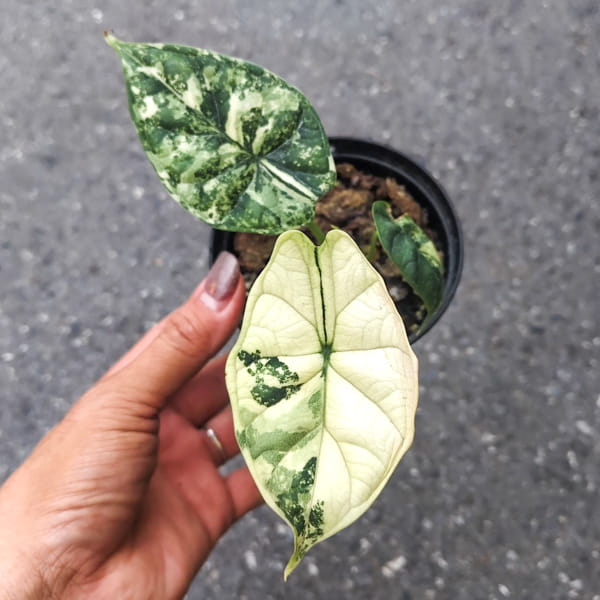 При получении обработайте свое растение (по желанию) фунгицидом – можно, например, добавить в грунт фитоспорин и пересадите в горшок с легким слабо-кислым субстратом (pH 5,5-6,5). Алоказии подойдет любой универсальный грунт для ароидных. Важно следить, чтобы грунт был легким. Можно разбавить универсальный грунт кокосовыми чипсами либо нейтральным торфом и перлитом. Грунт для алоказии должен быть питательным – можно добавить удобрение длительного действия например, осмокот, либо биогумус. Алоказии хорошо адаптируются в обычных домашних условиях, но оценят и тепличку, которая обеспечит им повышенную влажность для скорейшего набора корней и новых листьев. В качестве теплички можно использовать прозрачный пакет или зип-пакет.
