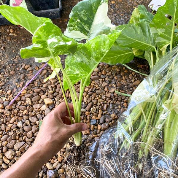 При получении обработайте свое растение (по желанию) фунгицидом – можно, например, добавить в грунт фитоспорин и пересадите в горшок с легким слабо-кислым субстратом (pH 5,5-6,5). Алоказии подойдет любой универсальный грунт для ароидных. Важно следить, чтобы грунт был легким. Можно разбавить универсальный грунт кокосовыми чипсами либо нейтральным торфом и перлитом. Грунт для алоказии должен быть питательным – можно добавить удобрение длительного действия например, осмокот, либо биогумус. Алоказии хорошо адаптируются в обычных домашних условиях, но оценят и тепличку, которая обеспечит им повышенную влажность для скорейшего набора корней и новых листьев. В качестве теплички можно использовать прозрачный пакет или зип-пакет.