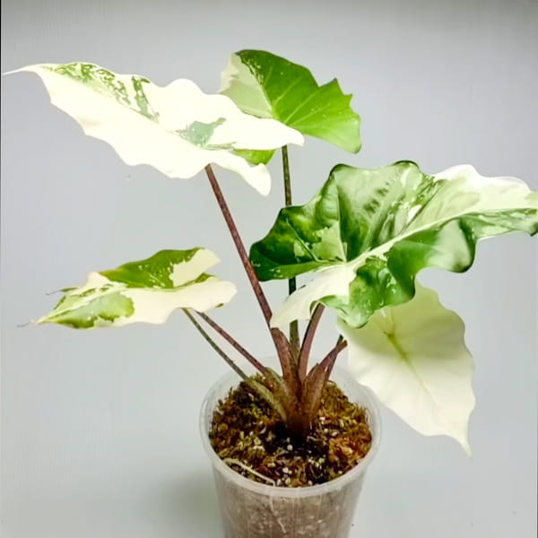 При получении обработайте свое растение (по желанию) фунгицидом – можно, например, добавить в грунт фитоспорин и пересадите в горшок с легким слабо-кислым субстратом (pH 5,5-6,5). Алоказии подойдет любой универсальный грунт для ароидных. Важно следить, чтобы грунт был легким. Можно разбавить универсальный грунт кокосовыми чипсами либо нейтральным торфом и перлитом. Грунт для алоказии должен быть питательным – можно добавить удобрение длительного действия например, осмокот, либо биогумус. Алоказии хорошо адаптируются в обычных домашних условиях, но оценят и тепличку, которая обеспечит им повышенную влажность для скорейшего набора корней и новых листьев. В качестве теплички можно использовать прозрачный пакет или зип-пакет.