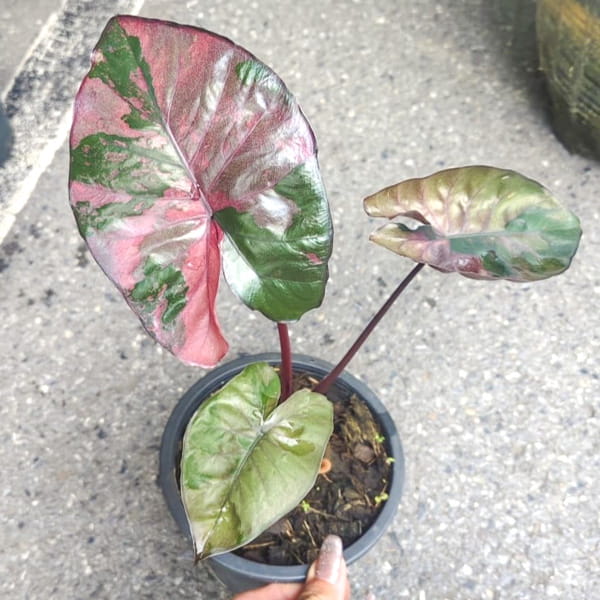 При получении обработайте свое растение (по желанию) фунгицидом – можно, например, добавить в грунт фитоспорин и пересадите в горшок с легким слабо-кислым субстратом (pH 5,5-6,5). Алоказии подойдет любой универсальный грунт для ароидных. Важно следить, чтобы грунт был легким. Можно разбавить универсальный грунт кокосовыми чипсами либо нейтральным торфом и перлитом. Грунт для алоказии должен быть питательным – можно добавить удобрение длительного действия например, осмокот, либо биогумус. Алоказии хорошо адаптируются в обычных домашних условиях, но оценят и тепличку, которая обеспечит им повышенную влажность для скорейшего набора корней и новых листьев. В качестве теплички можно использовать прозрачный пакет или зип-пакет.