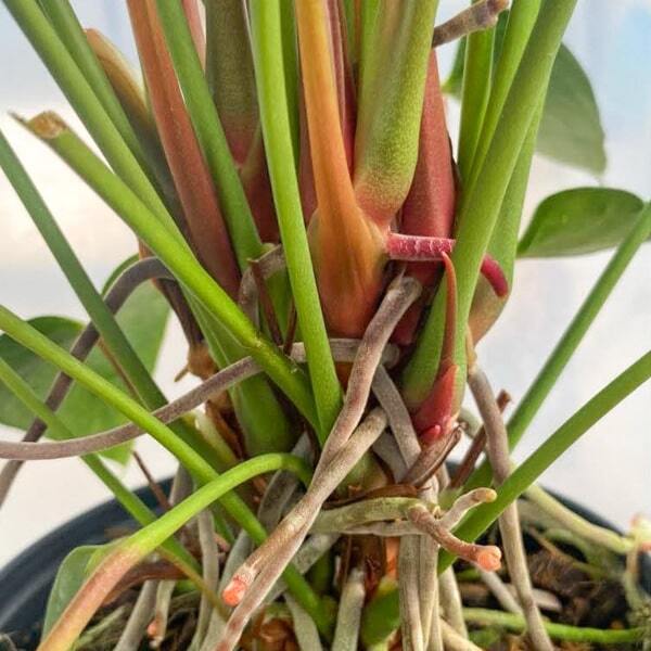 Антуриумы приезжают с небольшим торфяным комом либо с полностью открытой, хорошо развитой корневой системой, упакованными для транспортировки в пакет без горшка. Куст состоит, как правило, из нескольких ростов.
