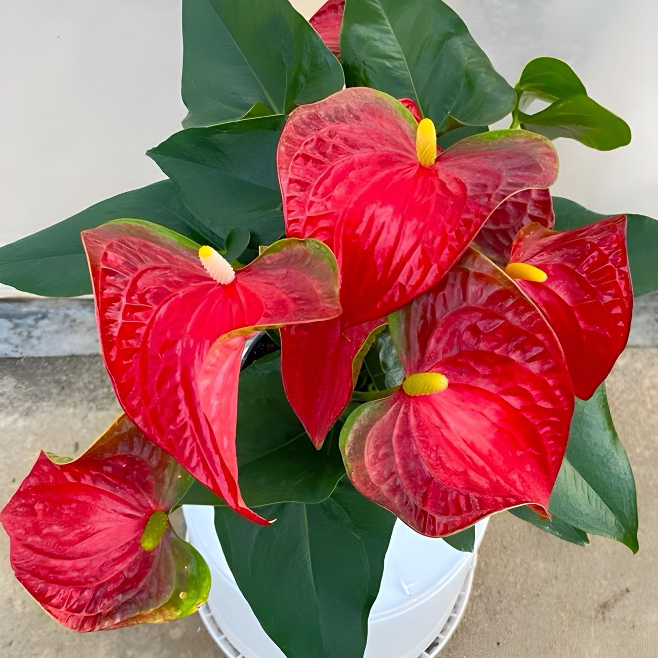 Антуриумы приезжают с небольшим торфяным комом либо с полностью открытой, хорошо развитой корневой системой, упакованными для транспортировки в пакет без горшка. Куст состоит, как правило, из нескольких ростов.