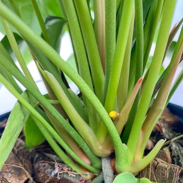 Антуриумы приезжают с небольшим торфяным комом либо с полностью открытой, хорошо развитой корневой системой, упакованными для транспортировки в пакет без горшка. Куст состоит, как правило, из нескольких ростов.