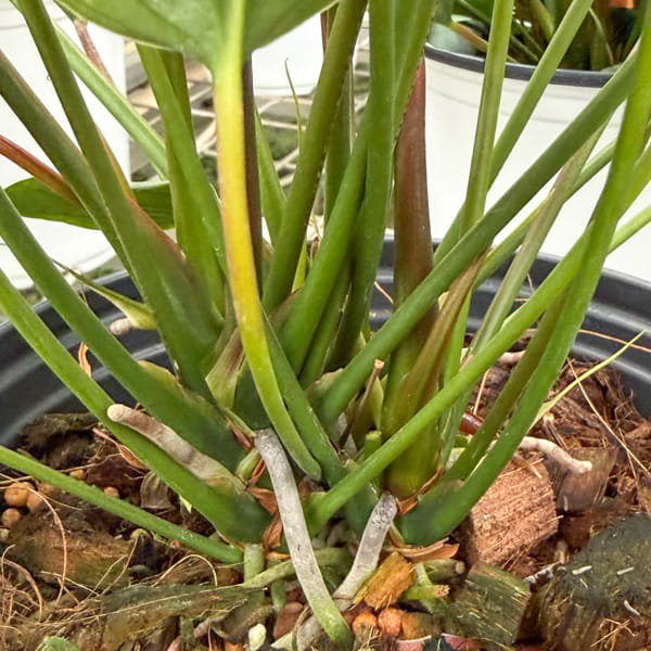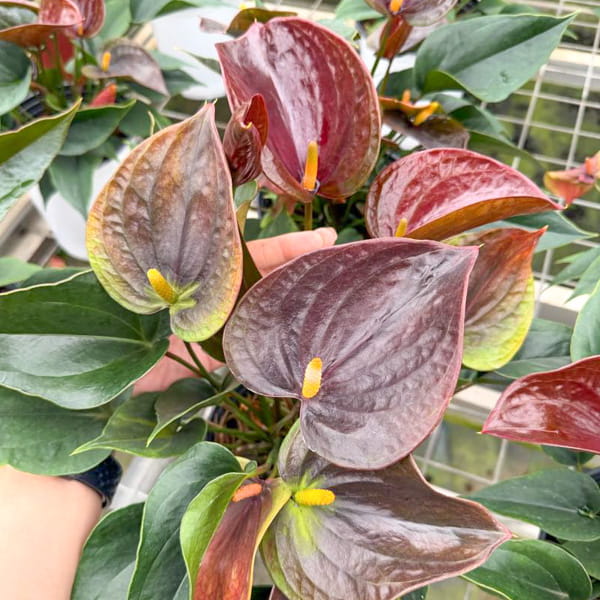 Антуриумы приезжают с небольшим торфяным комом либо с полностью открытой, хорошо развитой корневой системой, упакованными для транспортировки в пакет без горшка. Куст состоит, как правило, из нескольких ростов.
