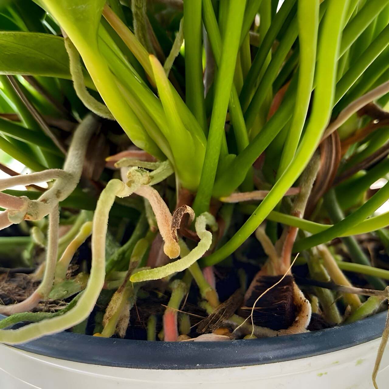 Антуриумы приезжают с небольшим торфяным комом либо с полностью открытой, хорошо развитой корневой системой, упакованными для транспортировки в пакет без горшка. Куст состоит, как правило, из нескольких ростов.