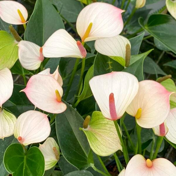 Антуриумы приезжают с небольшим торфяным комом либо с полностью открытой, хорошо развитой корневой системой, упакованными для транспортировки в пакет без горшка. Куст состоит, как правило, из нескольких ростов.