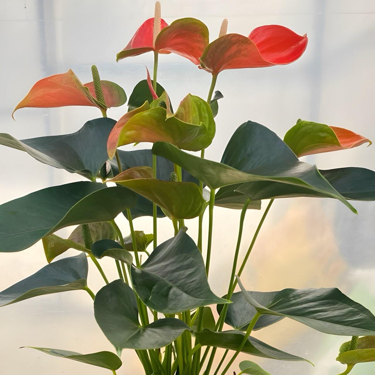 Антуриумы приезжают с небольшим торфяным комом либо с полностью открытой, хорошо развитой корневой системой, упакованными для транспортировки в пакет без горшка. Куст состоит, как правило, из нескольких ростов.