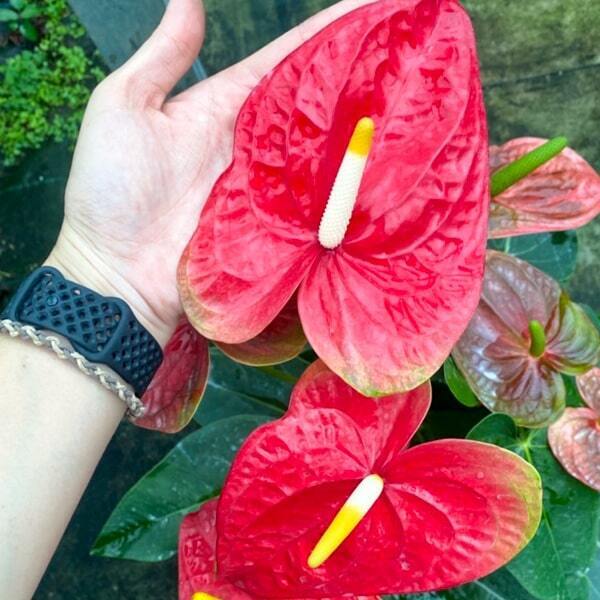 Антуриумы приезжают с небольшим торфяным комом либо с полностью открытой, хорошо развитой корневой системой, упакованными для транспортировки в пакет без горшка. Куст состоит, как правило, из нескольких ростов.