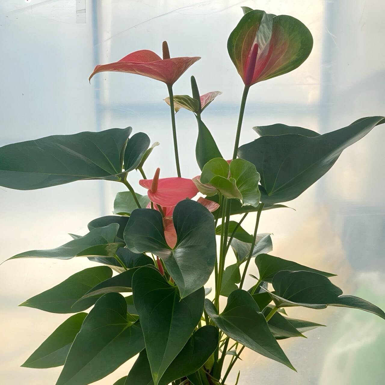 Антуриумы приезжают с небольшим торфяным комом либо с полностью открытой, хорошо развитой корневой системой, упакованными для транспортировки в пакет без горшка. Куст состоит, как правило, из нескольких ростов.