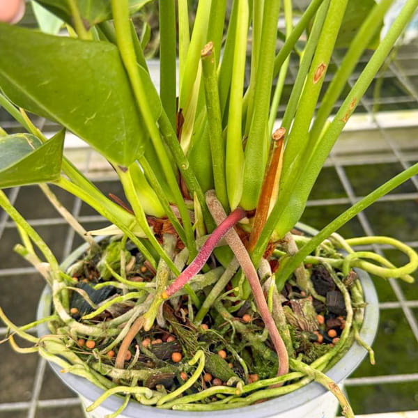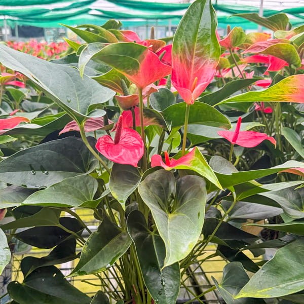 Антуриумы приезжают с небольшим торфяным комом либо с полностью открытой, хорошо развитой корневой системой, упакованными для транспортировки в пакет без горшка. Куст состоит, как правило, из нескольких ростов.