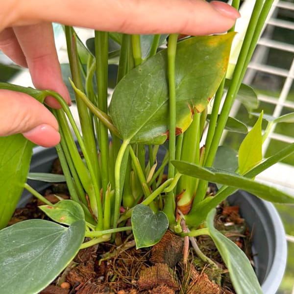 Антуриумы приезжают с небольшим торфяным комом либо с полностью открытой, хорошо развитой корневой системой, упакованными для транспортировки в пакет без горшка. Куст состоит, как правило, из нескольких ростов.