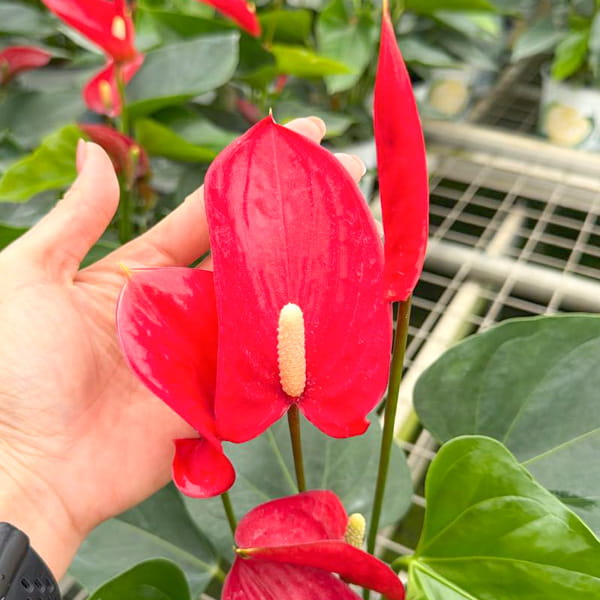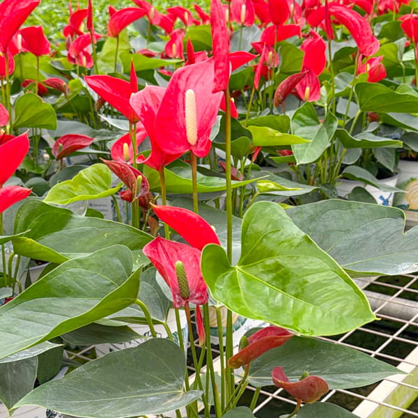 Антуриумы приезжают с небольшим торфяным комом либо с полностью открытой, хорошо развитой корневой системой, упакованными для транспортировки в пакет без горшка. Куст состоит, как правило, из нескольких ростов.