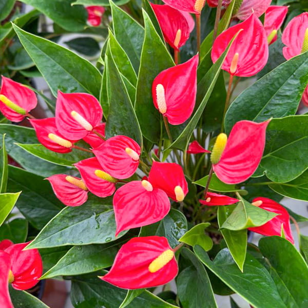 Антуриумы приезжают с небольшим торфяным комом либо с полностью открытой, хорошо развитой корневой системой, упакованными для транспортировки в пакет без горшка. Куст состоит, как правило, из нескольких ростов.