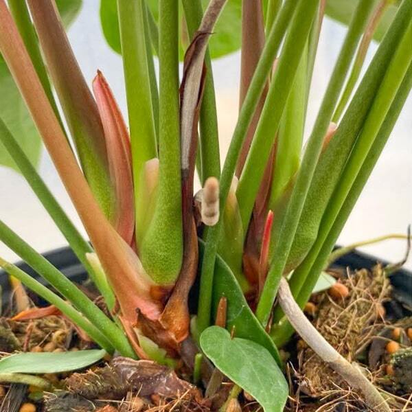 Антуриумы приезжают с небольшим торфяным комом либо с полностью открытой, хорошо развитой корневой системой, упакованными для транспортировки в пакет без горшка. Куст состоит, как правило, из нескольких ростов.