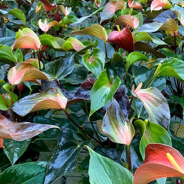 Антуриумы приезжают с небольшим торфяным комом либо с полностью открытой, хорошо развитой корневой системой, упакованными для транспортировки в пакет без горшка. Куст состоит, как правило, из нескольких ростов.