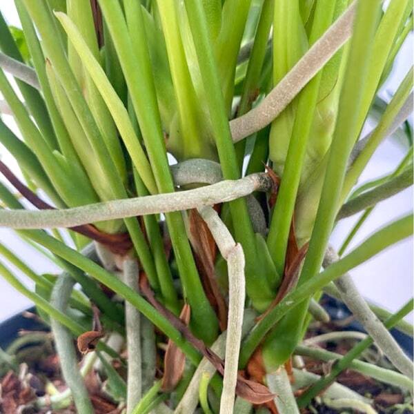 Антуриумы приезжают с небольшим торфяным комом либо с полностью открытой, хорошо развитой корневой системой, упакованными для транспортировки в пакет без горшка. Куст состоит, как правило, из нескольких ростов.