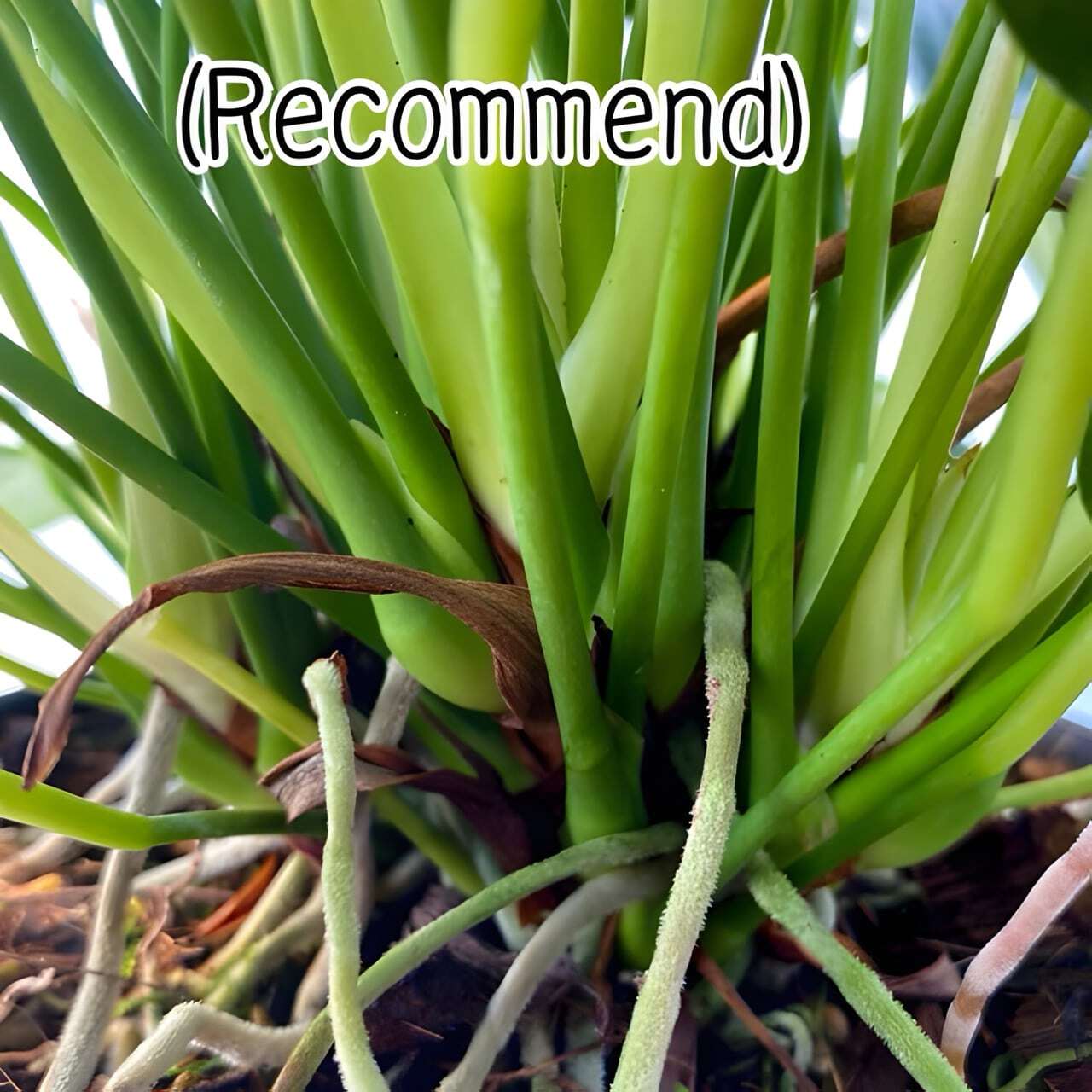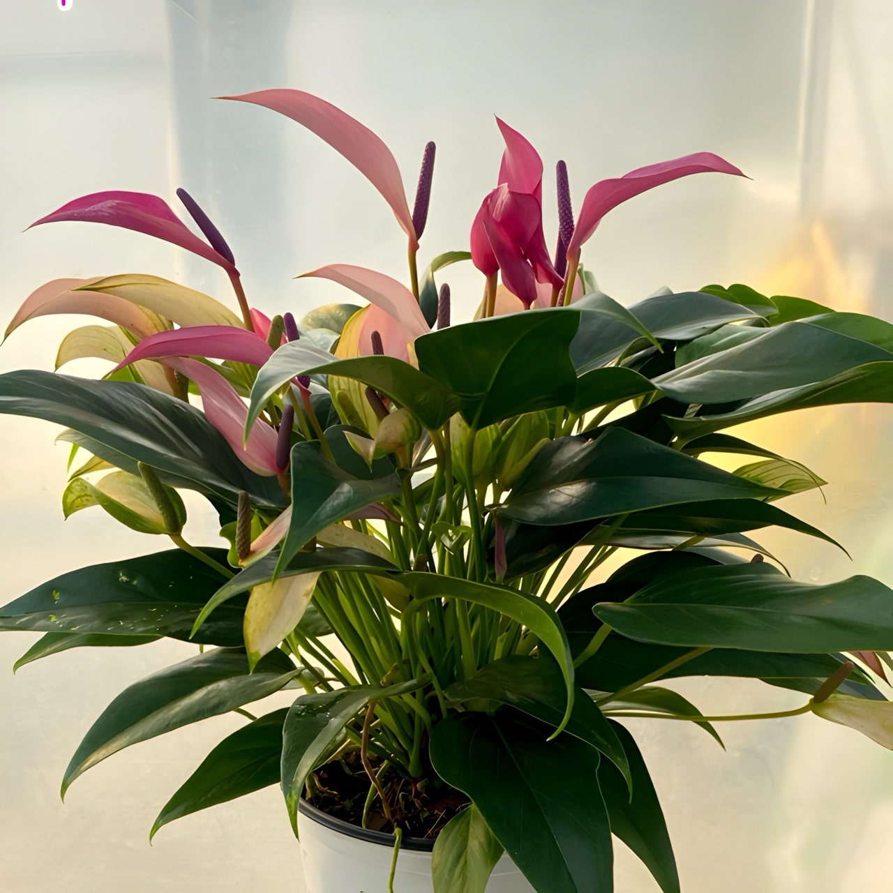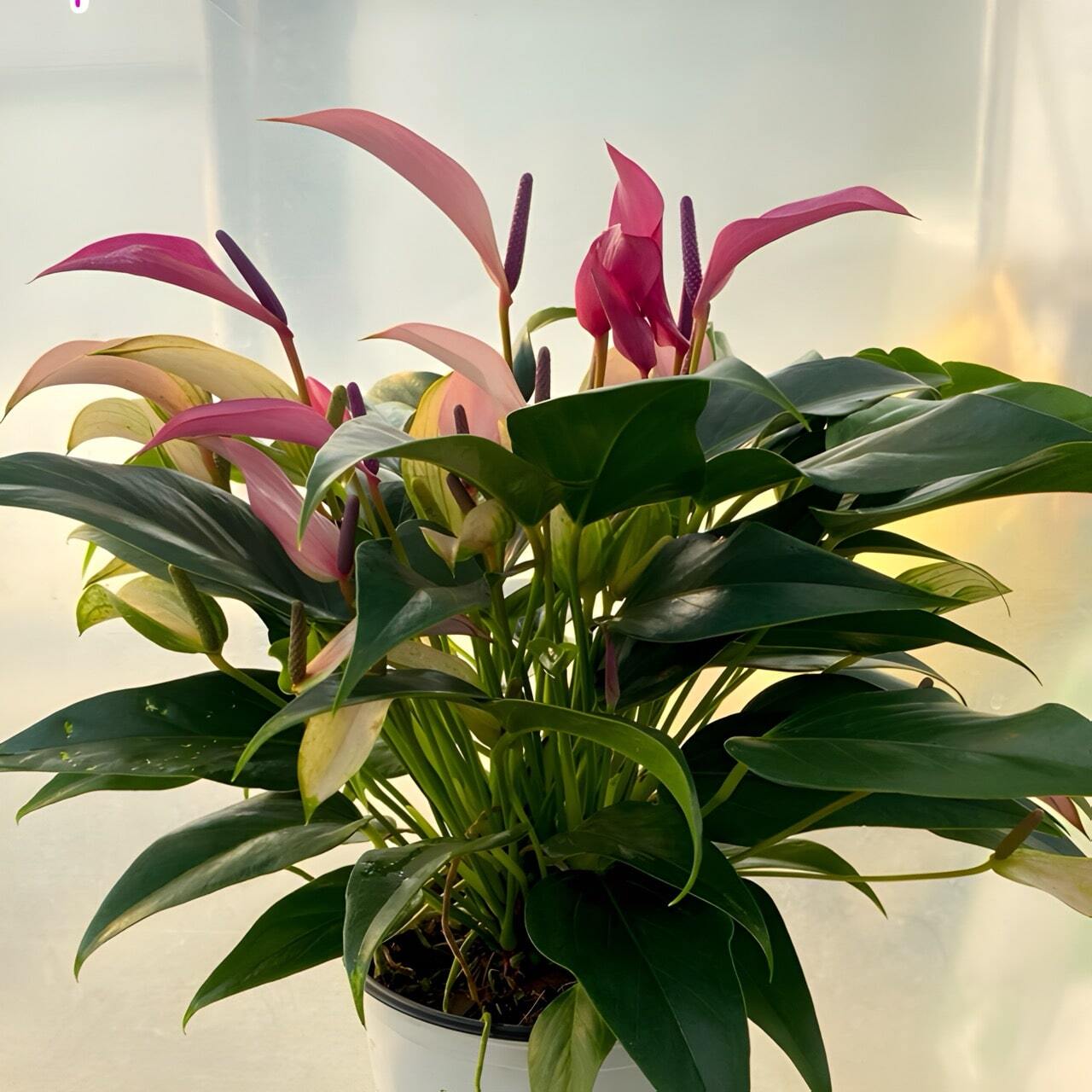Антуриумы приезжают с небольшим торфяным комом либо с полностью открытой, хорошо развитой корневой системой, упакованными для транспортировки в пакет без горшка. Куст состоит, как правило, из нескольких ростов.
