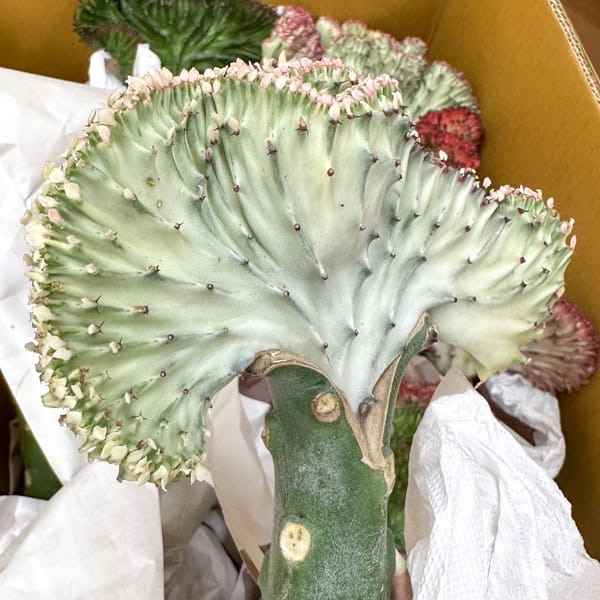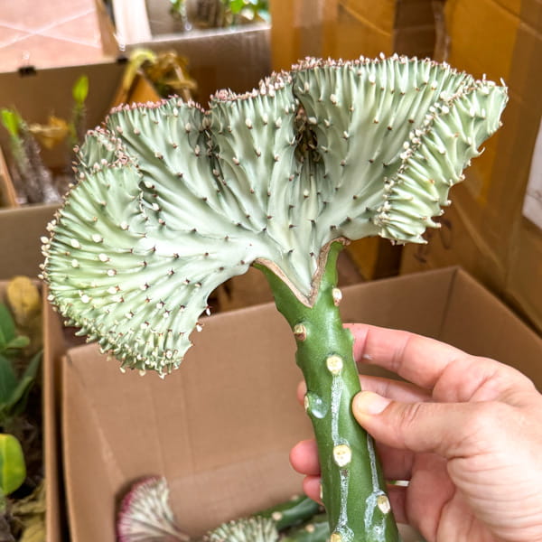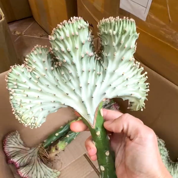 Эуфорбия лактеа кристата поставляется с открытой корневой системой (без грунта). Размер растений – 20-25 см.