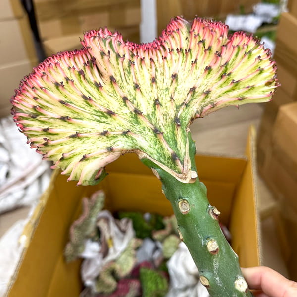 Эуфорбия лактеа кристата поставляется с открытой корневой системой (без грунта). Размер растений – 20-25 см.