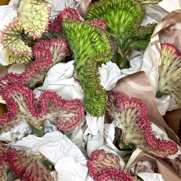 Эуфорбия лактеа кристата поставляется с открытой корневой системой (без грунта). Размер растений – 20-25 см.