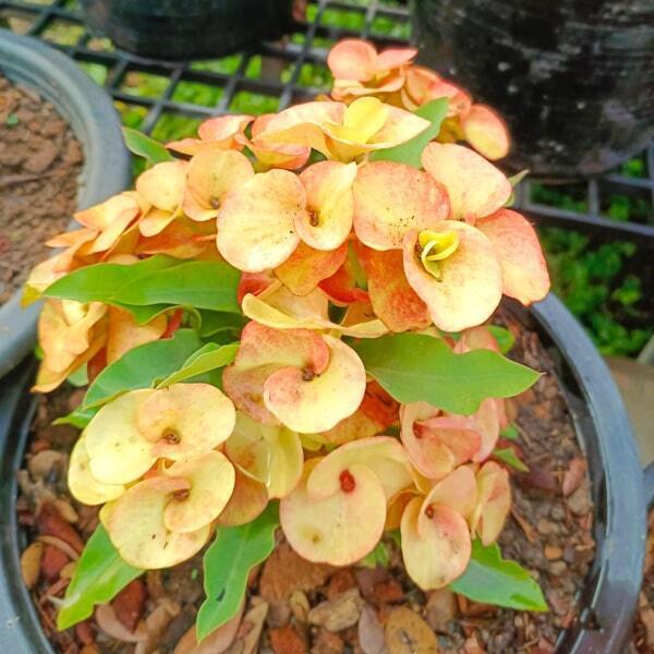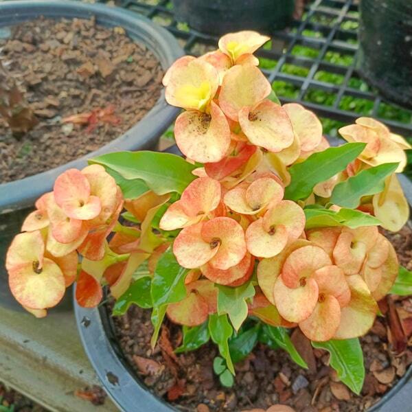 Эуфорбии милли – молодое растение корнесобственное либо прививка – в зависимости от сорта. Высота растения – минимум 6 см, в среднем 8-12 см. Эуфорбии милли поставляются с закрытой корневой системой в транспортировочном горшочке 2 дюйма с кокосовым торфом. Растения, как правило, поступают без листьев, цветков и бутонов. На стаканчике имеется маркировка с указанием номера сорта или непосредственно сорта.