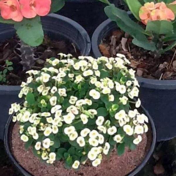 Эуфорбии милли – молодое растение корнесобственное либо прививка – в зависимости от сорта. Высота растения – минимум 6 см, в среднем 8-12 см. Эуфорбии милли поставляются с закрытой корневой системой в транспортировочном горшочке 2 дюйма с кокосовым торфом. Растения, как правило, поступают без листьев, цветков и бутонов. На стаканчике имеется маркировка с указанием номера сорта или непосредственно сорта.