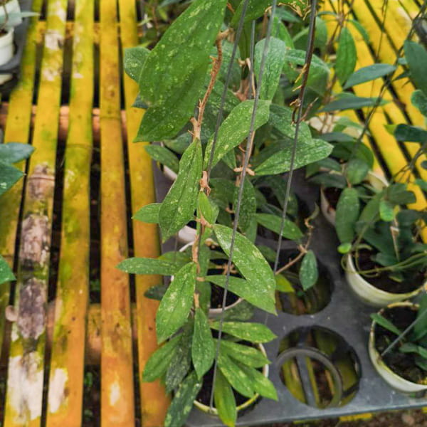 При получении обработайте свое растение (по желанию) фунгицидом и акарицидом и пересадите в горшок с легким субстратом от слабо-кислого до слабо-щелочного (pH 6,1-7,3) – подойдет любой грунт для орхидей, в который рекомендуем добавить перлит, вермикулит (подкисляет), цеолит (ощелачивает). Можно использовать нейтральный торф, кокосовые чипсы, биогумус 2:1:1 либо универсальный грунт для суккулентов. Как правило, в период адаптации хоям и дисхидиям не требуется дополнительных специальных условий. Адаптируются почти всегда успешно.