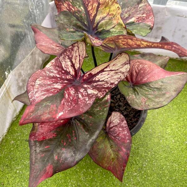 При получении обработайте свое растение (по желанию) фунгицидом и пересадите в горшок с легким нейтральным либо слабо-кислым субстратом (pH 6-6.5) – подойдет любой универсальный грунт, в который рекомендуем добавить перлит в соотношении 2:1. Можно использовать нейтральный торф, перлит, биогумус 2:1:1 или просто кокосовый торф. Важно, чтобы грунт был легким. При посадке грунт немного увлажнить сверху из пульверизатора. Важным условием успешной адаптации каладиумов является высокая влажность и тепло. Рекомендуем поместить растение в тепличку для формирования новых корней и появления листьев – подойдет зип-пакет. Для повышения влажности из пульверизатора увлажните тепличку внутри и поставьте на светлое место. В тепличке каладиум может сбросить все старые листья. Это нестрашно. Новые листья, как правило, появляются в течение 2-4 недель. Тепличку проветривать по необходимости – можно раз в 4-5 дней, это не вредит каладиуму.