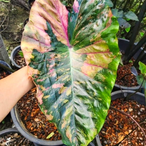 При получении колоказии в обязательном порядке нужно пересадить. В подавляющем большинстве случаев колоказии очень хорошо адаптируются. ПОЖАЛУЙСТА, учитывайте, что внешний вид растения при получении может быть не презентабельным. Также учитывайте, что молодые листья имеют окраску, отличную от сортовой. Это нормальное явление, а не показатель пересорта.