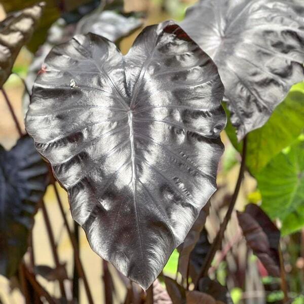 Укорененное молодое растение с закрытой корневой системой в транспортировочном горшочке 3-4 дюйма. Листовые пластины могут быть обрезаны на высоте 10-20 см для уменьшения испарения во время транспортировки. Если листовые пластины не обрезаны, за время транспортировки они могут частично либо полностью подгнить. Отсутствие листьев не является показателем гибели растения – при получении необходимо проверить состояние ризомы и корней. Т.к. колоказии пересылаются в сильно увлажненном субстрате, нижняя часть ризом также может подгнить. Это не препятствует успешной адаптации при условии наличия молодых корней выше подгнившей части ризомы.