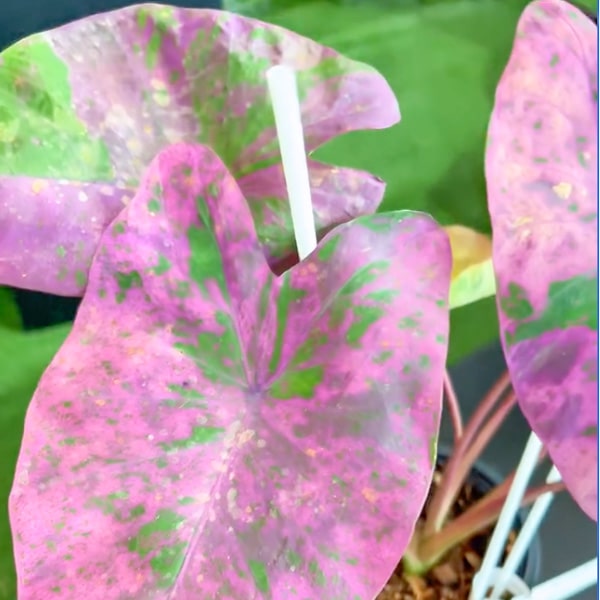 При получении колоказии в обязательном порядке нужно пересадить. В подавляющем большинстве случаев колоказии очень хорошо адаптируются. ПОЖАЛУЙСТА, учитывайте, что внешний вид растения при получении может быть не презентабельным. Также учитывайте, что молодые листья имеют окраску, отличную от сортовой. Это нормальное явление, а не показатель пересорта.