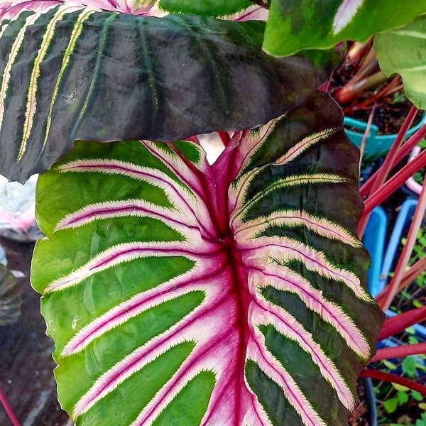 При получении колоказии в обязательном порядке нужно пересадить. В подавляющем большинстве случаев колоказии очень хорошо адаптируются. ПОЖАЛУЙСТА, учитывайте, что внешний вид растения при получении может быть не презентабельным. Также учитывайте, что молодые листья имеют окраску, отличную от сортовой. Это нормальное явление, а не показатель пересорта.