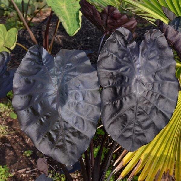 Укорененное молодое растение с закрытой корневой системой в транспортировочном горшочке 3-4 дюйма. Листовые пластины могут быть обрезаны на высоте 10-20 см для уменьшения испарения во время транспортировки. Если листовые пластины не обрезаны, за время транспортировки они могут частично либо полностью подгнить. Отсутствие листьев не является показателем гибели растения – при получении необходимо проверить состояние ризомы и корней. Т.к. колоказии пересылаются в сильно увлажненном субстрате, нижняя часть ризом также может подгнить. Это не препятствует успешной адаптации при условии наличия молодых корней выше подгнившей части ризомы.