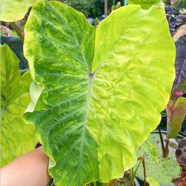При получении колоказии в обязательном порядке нужно пересадить. В подавляющем большинстве случаев колоказии очень хорошо адаптируются. ПОЖАЛУЙСТА, учитывайте, что внешний вид растения при получении может быть не презентабельным. Также учитывайте, что молодые листья имеют окраску, отличную от сортовой. Это нормальное явление, а не показатель пересорта.