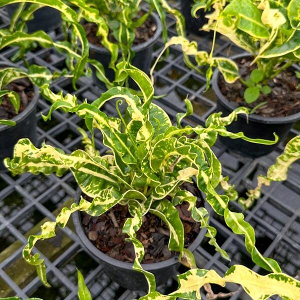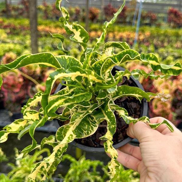 Окрас кротонов зависит от сезона. Даже яркие сорта могут приехать с зелеными листьями. По мере роста при достаточном количестве тепла и света при смене сезона они окрашиваются в сортовые цвета.