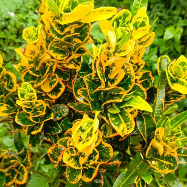 Окрас кротонов зависит от сезона. Даже яркие сорта могут приехать с зелеными листьями. По мере роста при достаточном количестве тепла и света при смене сезона они окрашиваются в сортовые цвета.