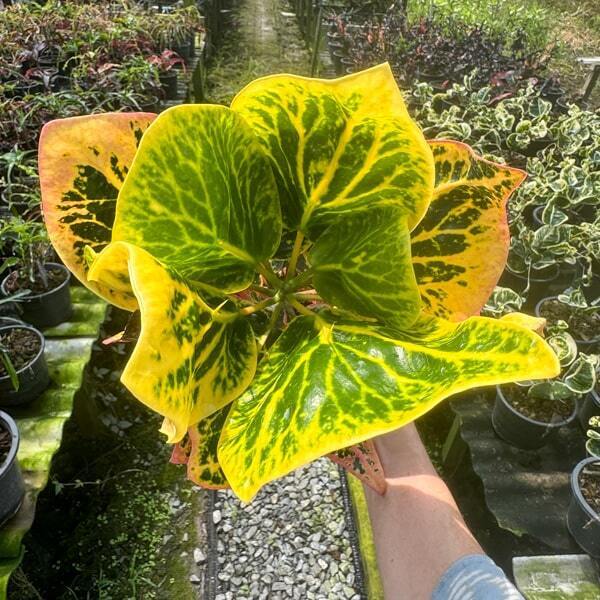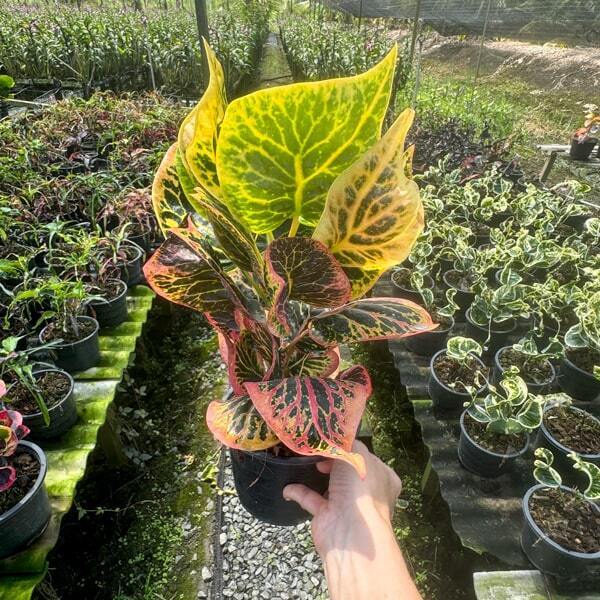 Окрас кротонов зависит от сезона. Даже яркие сорта могут приехать с зелеными листьями. По мере роста при достаточном количестве тепла и света при смене сезона они окрашиваются в сортовые цвета.