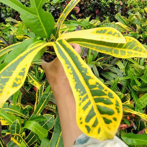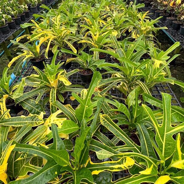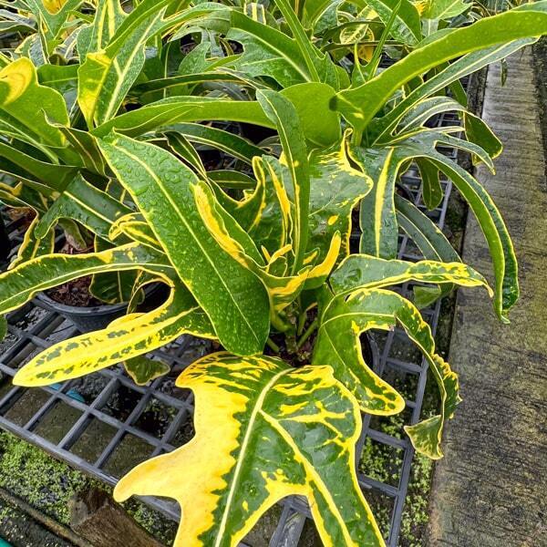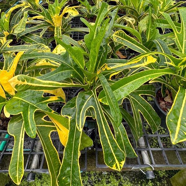 Окрас кротонов зависит от сезона. Даже яркие сорта могут приехать с зелеными листьями. По мере роста при достаточном количестве тепла и света при смене сезона они окрашиваются в сортовые цвета.