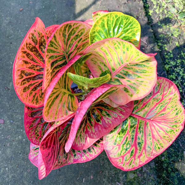 Окрас кротонов зависит от сезона. Даже яркие сорта могут приехать с зелеными листьями. По мере роста при достаточном количестве тепла и света при смене сезона они окрашиваются в сортовые цвета.