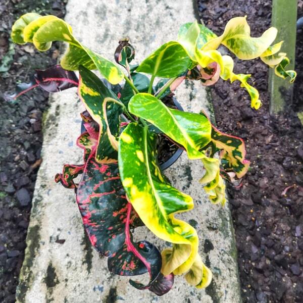 Окрас кротонов зависит от сезона. Даже яркие сорта могут приехать с зелеными листьями. По мере роста при достаточном количестве тепла и света при смене сезона они окрашиваются в сортовые цвета.