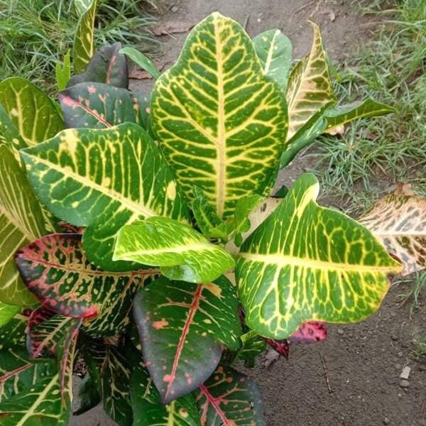 Окрас кротонов зависит от сезона. Даже яркие сорта могут приехать с зелеными листьями. По мере роста при достаточном количестве тепла и света при смене сезона они окрашиваются в сортовые цвета.