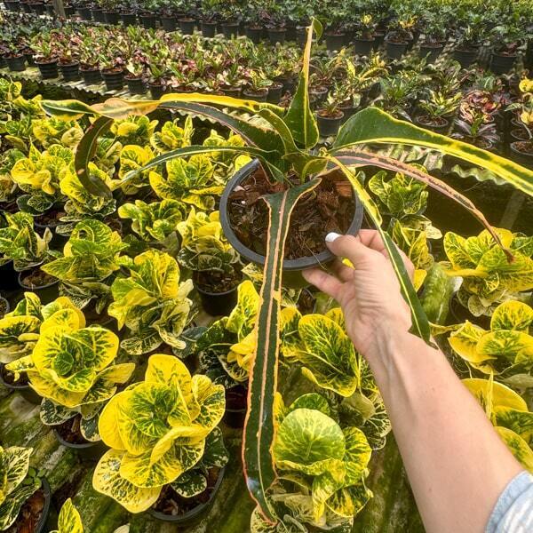 Окрас кротонов зависит от сезона. Даже яркие сорта могут приехать с зелеными листьями. По мере роста при достаточном количестве тепла и света при смене сезона они окрашиваются в сортовые цвета.