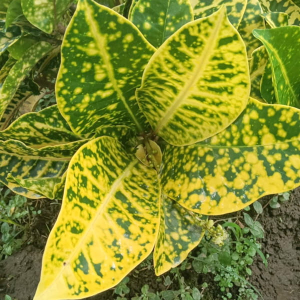 Окрас кротонов зависит от сезона. Даже яркие сорта могут приехать с зелеными листьями. По мере роста при достаточном количестве тепла и света при смене сезона они окрашиваются в сортовые цвета.