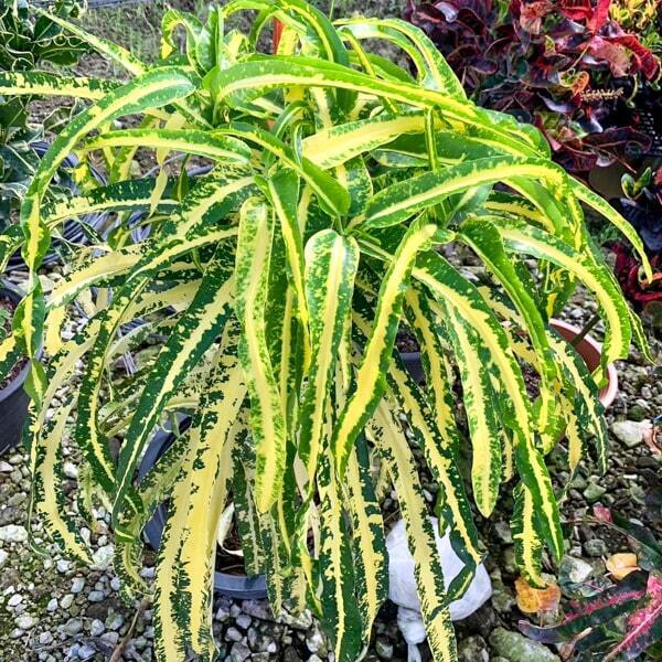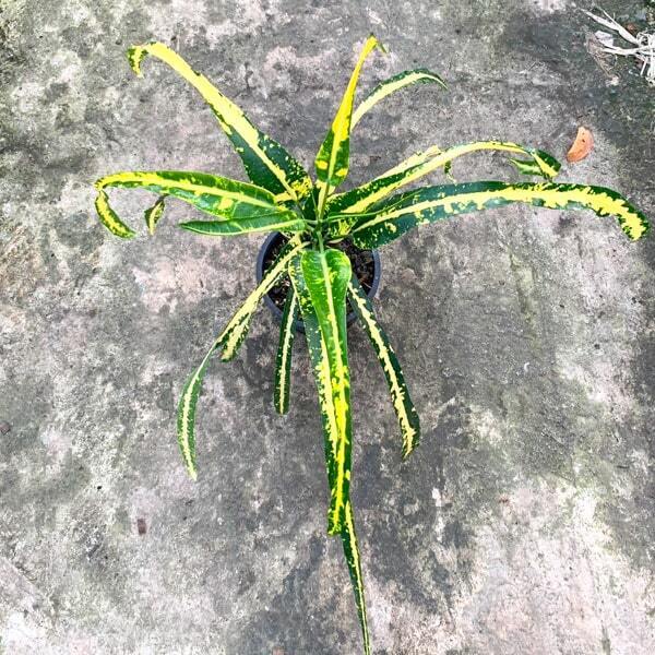 Окрас кротонов зависит от сезона. Даже яркие сорта могут приехать с зелеными листьями. По мере роста при достаточном количестве тепла и света при смене сезона они окрашиваются в сортовые цвета.