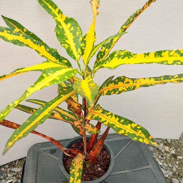 Окрас кротонов зависит от сезона. Даже яркие сорта могут приехать с зелеными листьями. По мере роста при достаточном количестве тепла и света при смене сезона они окрашиваются в сортовые цвета.